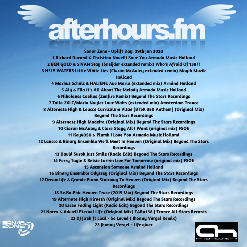 My exclusive two hour mix for Afterhours FM ‘Uplift Day’ is now available on Spotify and Mixcloud.