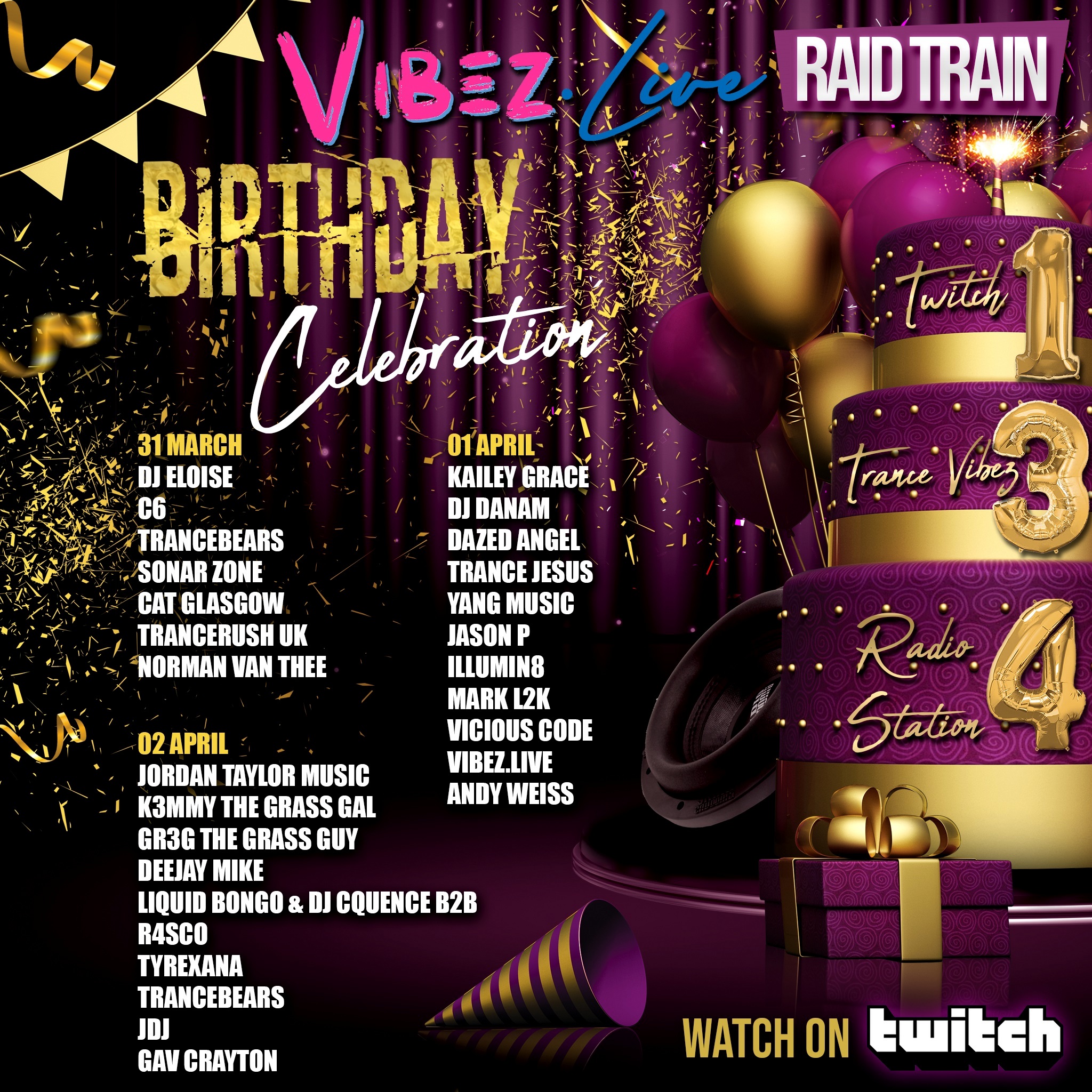 Are you ready to celebrate with us? It’s time to buckle up and join the excitement as we celebrate our milestones with a bang! For the past 4 years, we have been rocking the airwaves with our amazing radio station. Three years ago, we added Trance Vibez to our roster, bringing you the best in trance music from around the world. And just last year, we embarked on a new adventure by taking our passion for music to Twitch, where we’ve been streaming our shows live.
